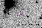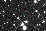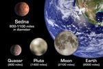2023 KQ14(赤線)と他の3つのセドノイドの軌道(白線)を示した図。黄色い点は2025年7月時点の位置を表している(国立天文台)