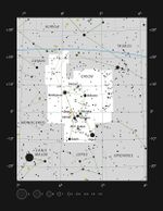 オリオン座にある原始星HOPS-315の位置を赤色の円で示した星図(ESO, IAU and Sky & Telescope)