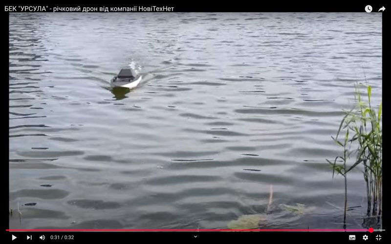 ドローンを載せて航行するウクライナの無人水上艇「ウルスラ」(YouTubeより)