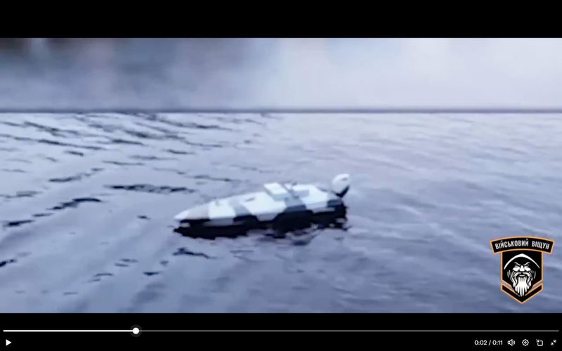 回転翼4つのクワッドコプタータイプのドローンの、より航続距離の長い固定翼ドローン(最大航続距離40km)を発進させるUSV(Xのスクリーンショット)