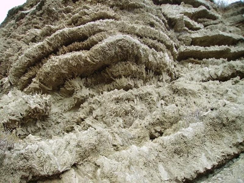 塩と石膏の結晶が見られる露頭の細部(D.Bressan)
