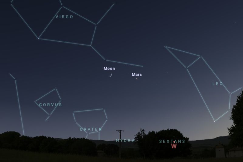 2025年7月29日、日の入り約45分後(東京:午後19時半ごろ)の西の空(Stellarium)