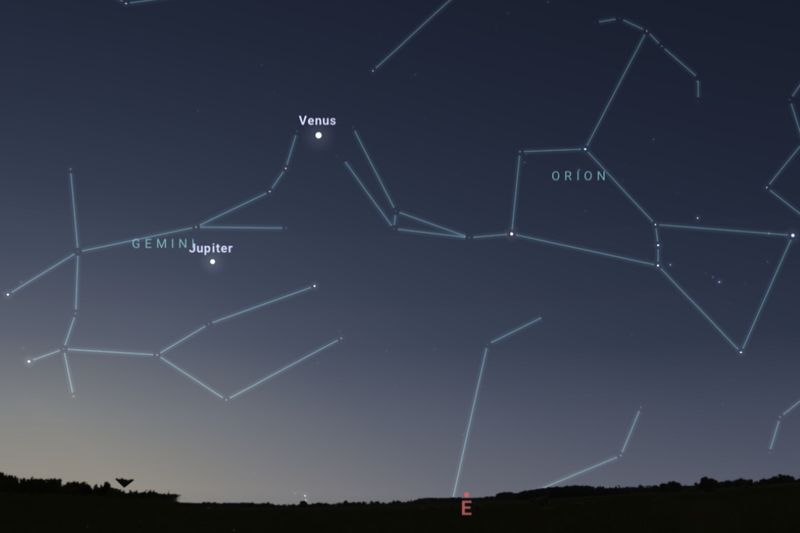 2025年8月1日、日の出約45分前(東京:午前4時過ぎ)の東の空(Stellarium)
