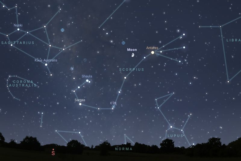 2025年8月4日(東京:午後9時ごろ)の南の空(Stellarium)