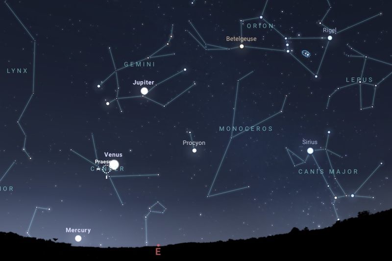 2025年8月31日、日の出約1時間前(東京:午前4時15分ごろ)の東の空(Stellarium)