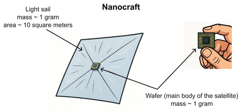 ブラックホール探査に用いられるナノクラフト(超軽量探査機)を描いたイラスト(Bambi, iScience 2025)