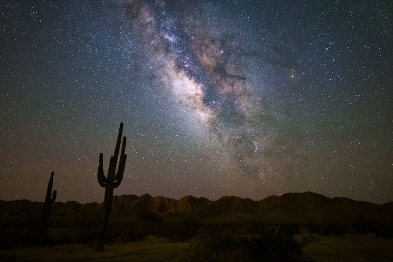米アリゾナ州フェニックス近郊ソノラ砂漠のサボテンと天の川(Getty Images)