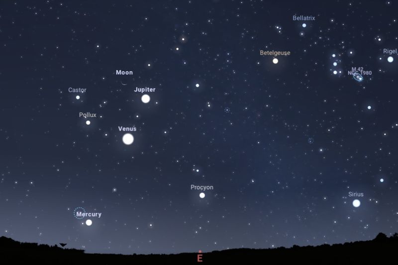 2025年8月20日、日の出約1時間前(東京:午前4時ごろ)の東の空(Stellarium)