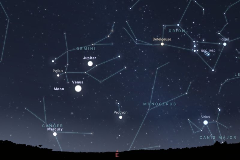 2025年8月21日、日の出約1時間前(東京:午前4時ごろ)の東の空(Stellarium)