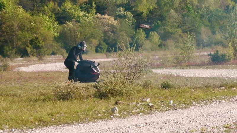 「Volonaut Airbike」(ボロノート・エアバイク)。ポーランドの発明家であり起業家でもあるトマシュ・パタンの発案によるジェット推進の個人用航空機だ(YouTubeのスクリーンショット)