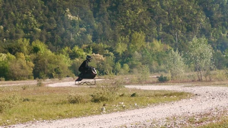 「Volonaut Airbike」(ボロノート・エアバイク)。ポーランドの発明家であり起業家でもあるトマシュ・パタンの発案によるジェット推進の個人用航空機だ(YouTubeのスクリーンショット)