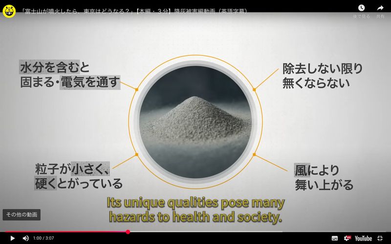 富士山で大規模な噴火が東京の都市インフラに及ぼす影響(YouTubeのスクリーンショット)