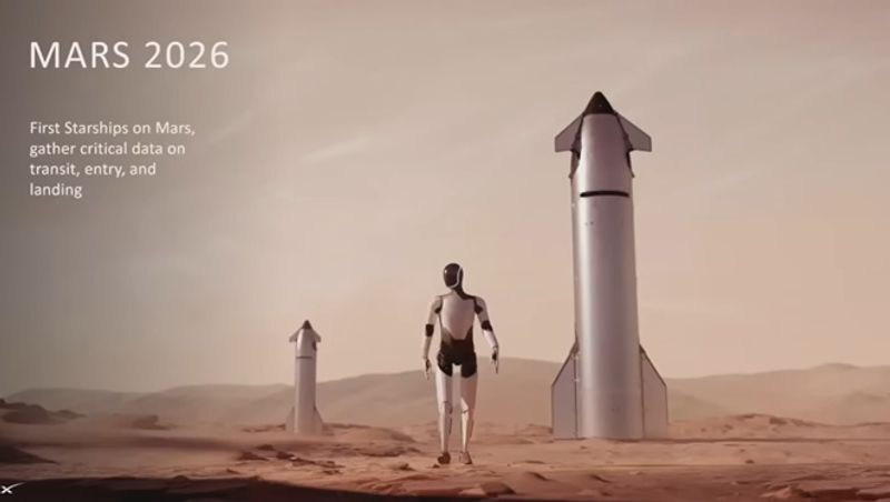 スペースXのプライベート・ミッションとして2026年に予定されるスターシップの火星着陸。無人ミッションだがヒト型ロボット「オプティマス」が搭乗する(c)SpaceX