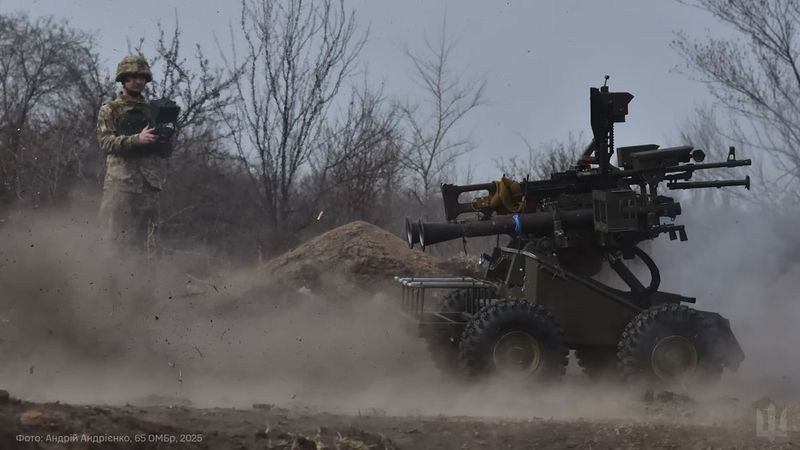 ウクライナ軍のロケットランチャーを搭載した地上ドローン(YouTubeのスクリーンショット)
