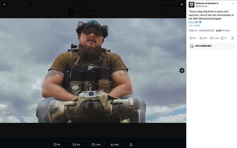 ウクライナ軍のロボット犬。ホビー市場向け製品を建物内部の探査など危険な任務に投入(Xのスクリーンショット)