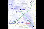 はくちょう座にある変光星はくちょう座χ(カイ)星の位置を示した図(commons (da File:Cygnus constellation map.png), CC BY-SA 3.0 <https://creativecommons.org/licenses/by-sa/3.0>, via Wikimedia Commons)