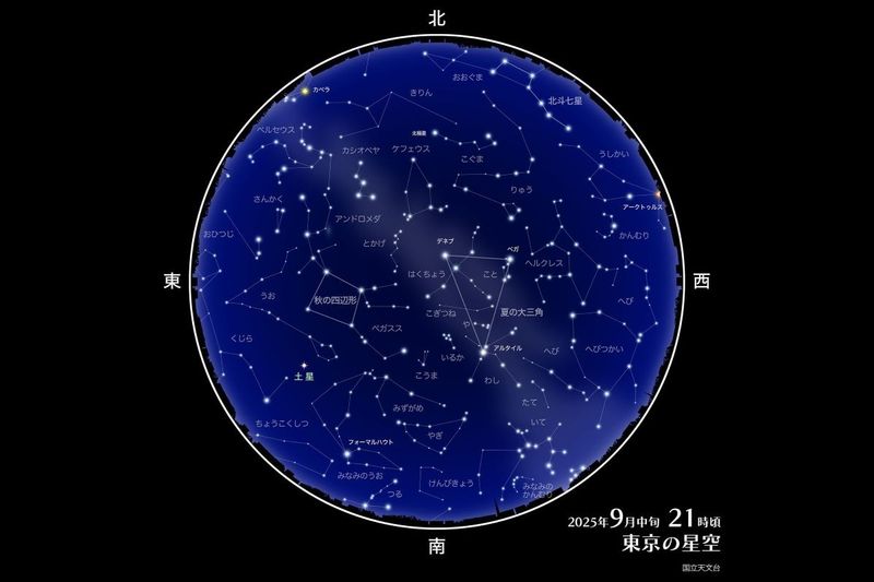 2025年9月中旬21時頃の東京の夜空(国立天文台)