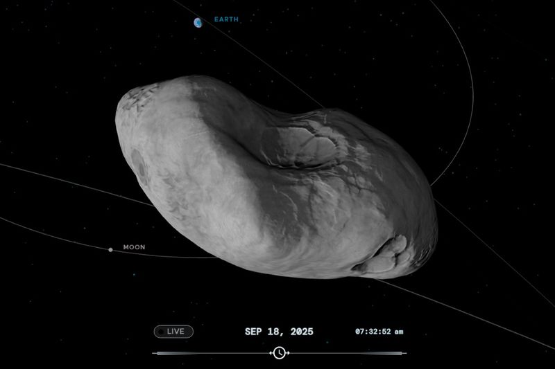小惑星「2025 FA22」を視点とした地球と月の位置関係(NASA's Eyes on Asteroids)