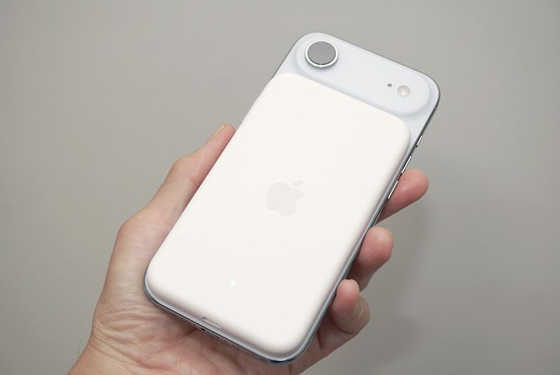 アップル純正アクセサリーのiPhone Air専用MagSafeバッテリーパック。装着した時の合計質量は約282グラム