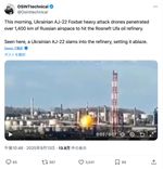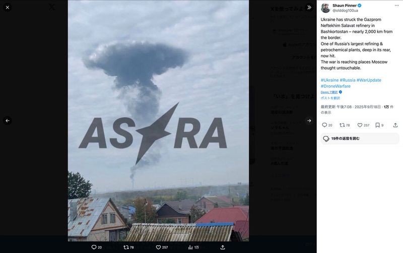 ロシアではドローン攻撃の画像をソーシャルメディアで共有するのは違法だが、それでも人々は製油所が爆発・炎上する様子を捉えた動画(Xのスクリーンショット)