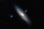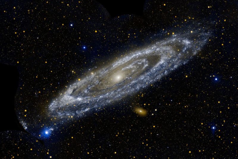 NASAの紫外線観測衛星GALEX(Galaxy Evolution Explorer)が捉えたアンドロメダ銀河(M31)。青色は遠紫外線、オレンジ色は近紫外線を表している(NASA/JPL-Caltech)