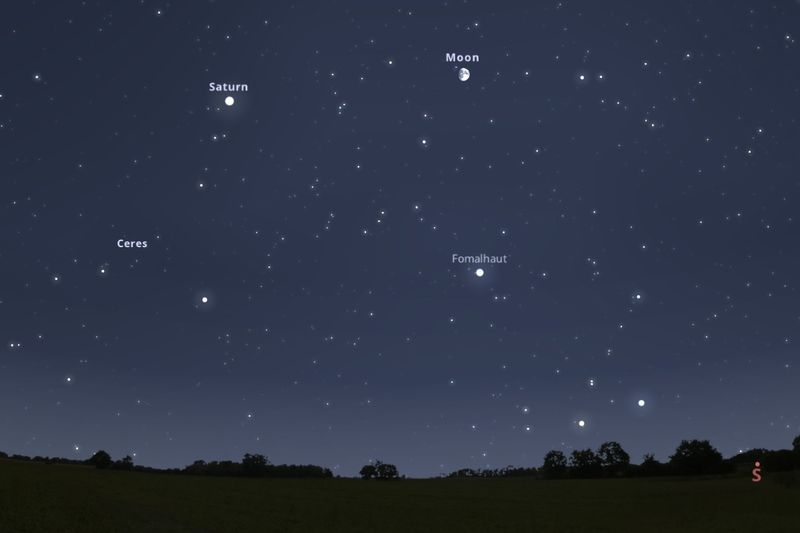 2025年10月4日、日の入り約2時間40分後(東京:午後8時01分)の南南東の空(Stellarium)