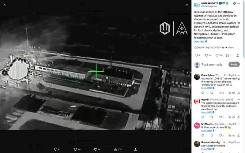 ウクライナはパイプラインや港湾施設への攻撃も強化しているが、天然ガス施設も攻撃している(Xのスクリーンショット)