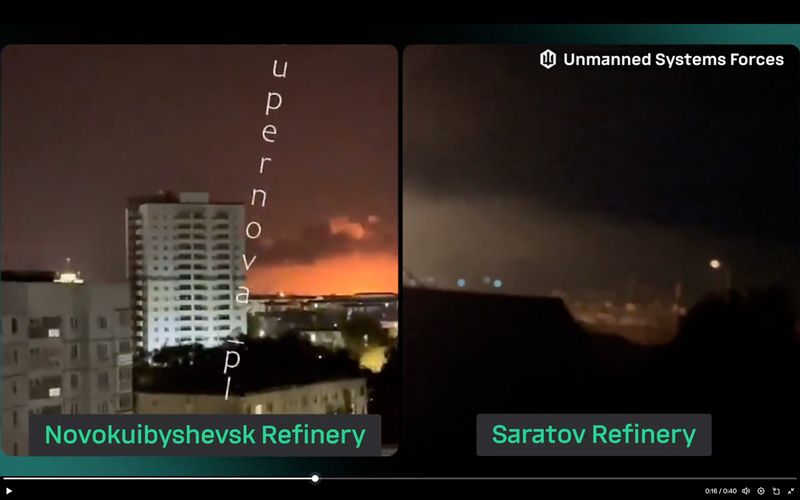 被害の大半をもたらしているとみられるウクライナ軍のドローン部隊「マジャールの鳥」が投稿した製油所「グランドツアー」の動画(Xのスクリーンショット)