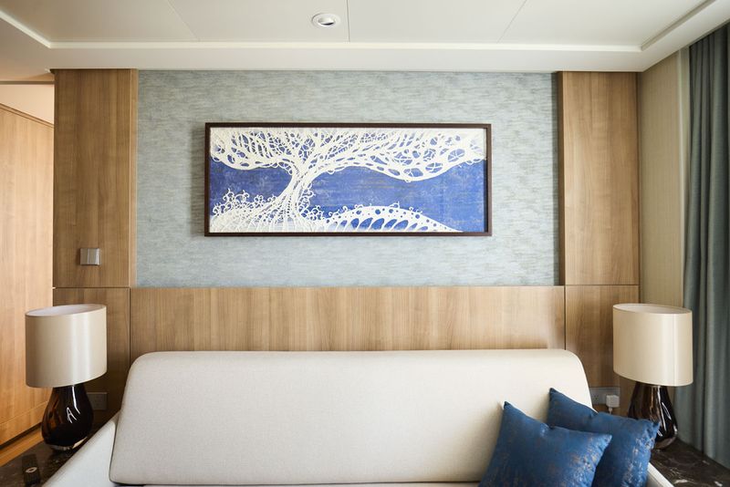 福井県の部屋には、1,500年以上の歴史をもつ工芸・越前和紙の作品。