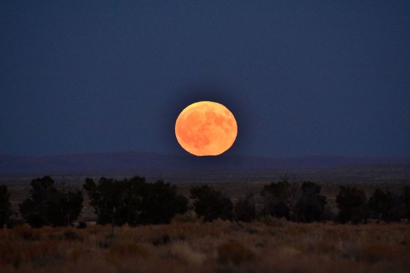米シードスカディー国立野生動物保護区で、草原の向こうに昇る「ハーベストムーン」の満月(Shutterstock.com)