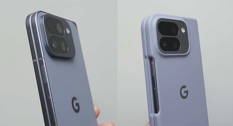 純正ケースを装着すると背面のカメラユニットの出っ張りが目立ちにくくなる