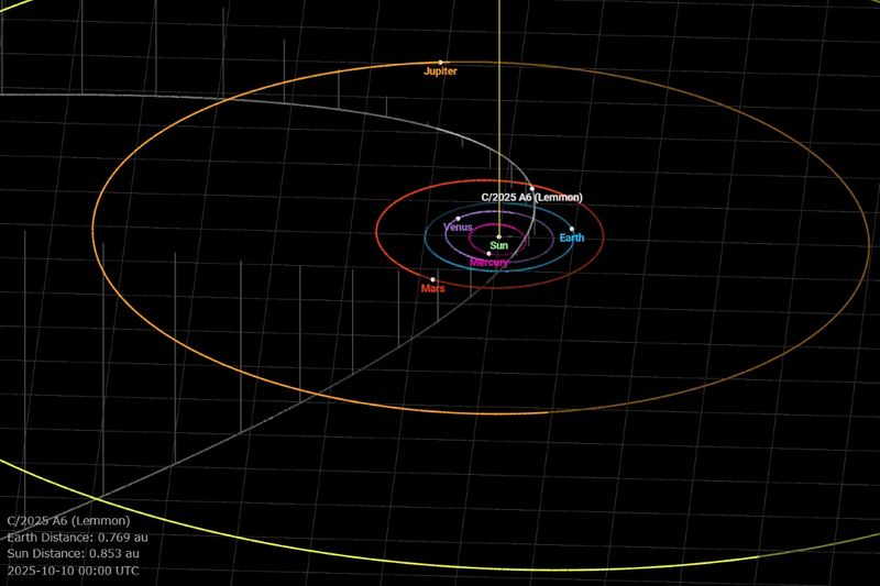 レモン彗星(C/2025 A6)の軌道を示した図(JPL Small-Body Database Lookup)