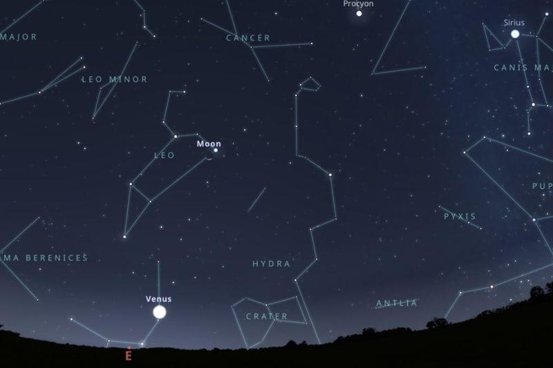 2025年10月17日、日の出1時間前(東京:午前4時49分)の東の空(Stellarium)