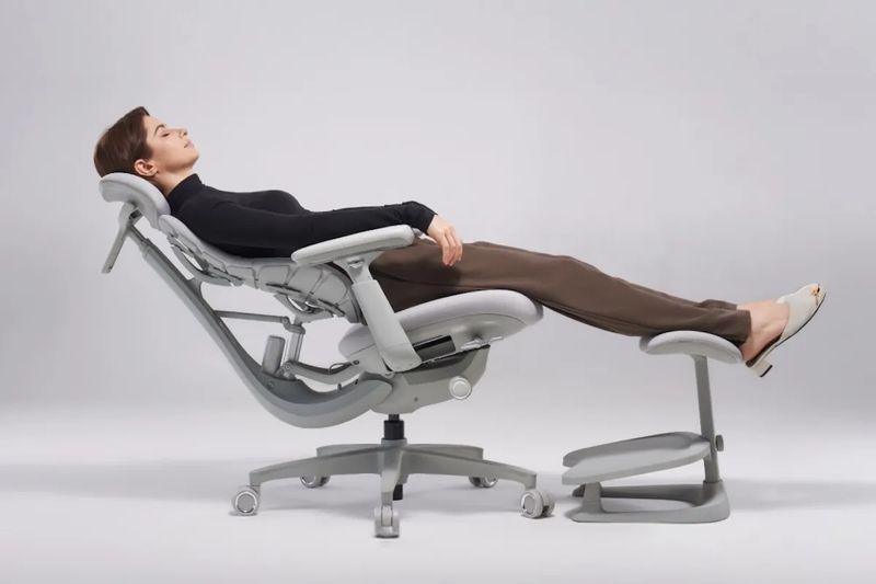 独立型のフットレストがあれば、背もたれを倒して寝そべる時には足を伸ばして上段で脹脛を支えるといった使い方ができる。これは背中の緊張を和らげるために効果的だ(LiberNovo)