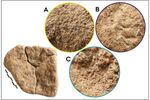 ドイツのミュールハイム・ディーテスハイムで発掘された砂岩石器の表面に確認された青色残留物(Wisher et al., 2025. Published by Cambridge University Press on behalf of Antiquity Publications Ltd)