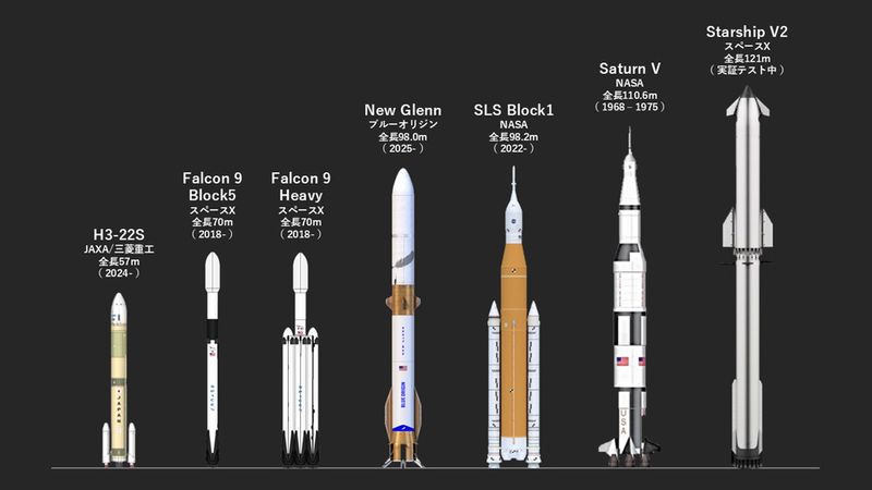 ブルーオリジンは実運用されたロケットにおいて史上3番目の全長を誇る。スターシップV3は実証試験中 (c)Blue Origin
