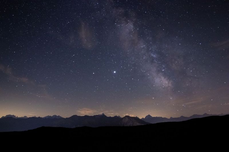 4000m級の高山の上にきらめく木星と土星(Shutterstock.com)