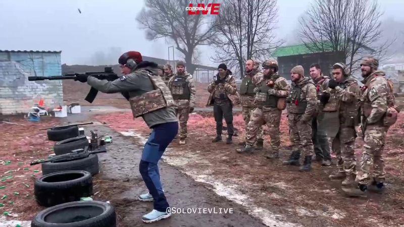 ロシアメディアが報じた、散弾銃でFPVドローンを撃ち落とす訓練の様子。五輪メダリストらが指導することもあるという。X(旧ツイッター)で共有された動画より