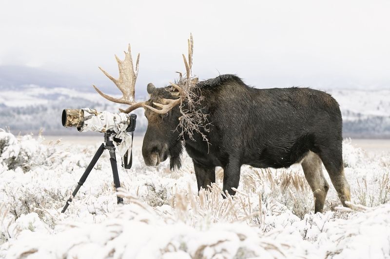 カメラの背後に立つオスのヘラジカ((c) Deena R. Sveinsson of Estes Park, Colorado, USA. Photos courtesy of Nature's Best Photography, All rights reserved.)