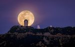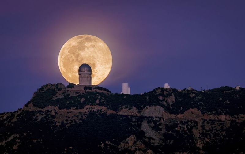 米アリゾナ州トゥーソン郊外にあるキットピーク国立天文台(KPNO)の口径4mメイヨール望遠鏡の背後に昇る満月。2022年撮影(M. Hunt/KPNO/NOIRLab/NSF/AURA)