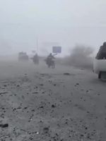オートバイなどの軽量車両に乗ったロシア軍部隊が、霧に紛れてウクライナ東部ドネツク州のポクロウシク市内に入る様子とされる画像。X(旧ツイッター)で共有された動画から