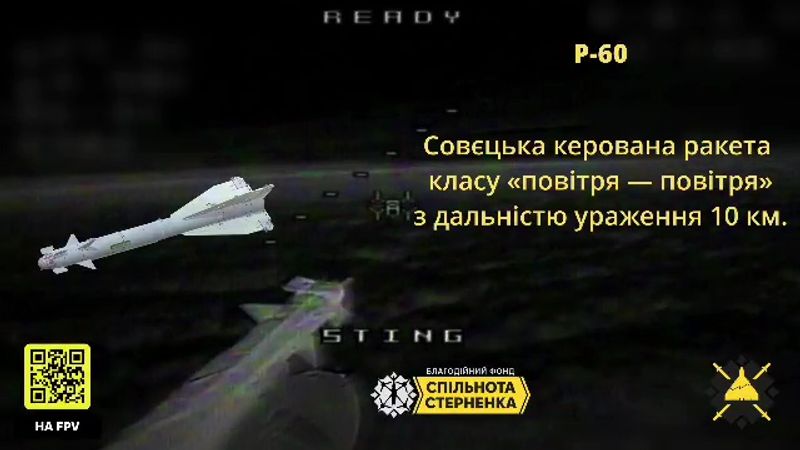 R-60ミサイルで武装したシャヘドが撃墜される様子。X(旧ツイッター)で共有された動画より