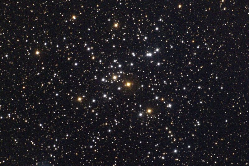 おおいぬ座の散開星団M41。地球からの距離は約2300光年で、直径は約25光年、年齢は約2億年とみられる。1997年9月に米アリゾナ州にあるケースウェスタンリザーブ大学ワーナー&スウェージー天文台のバレル・シュミット望遠鏡で撮影(NOIRLab/NSF/AURA)