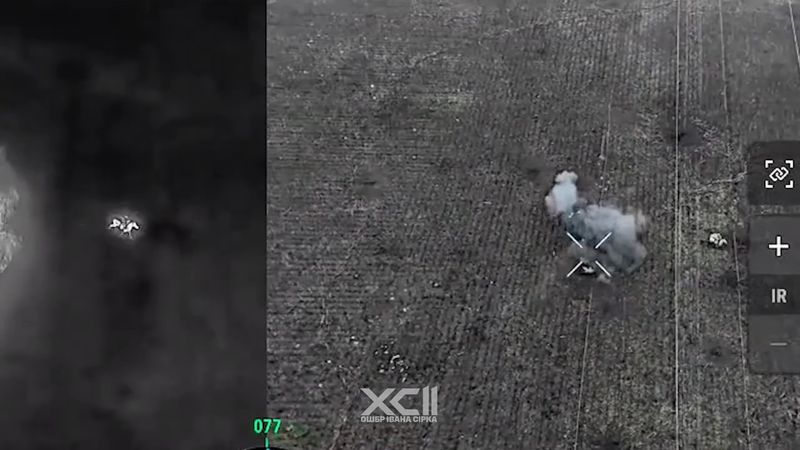 ウクライナの平原を馬で駆けるロシア兵とみられる画像。ウクライナ軍第92独立強襲旅団がフェイスブックで公開した動画から