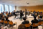 セッションは登壇者を囲む会場で。「アート起点の企業協創のあり方を探る~その素晴らしさと難しさ~」の様子(c)Junpei Kawahata