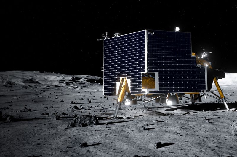 グリフィン1には当初、NASAの月面探査車「バイパー」が搭載される予定だったが予算不足のため中止。代替ペイロードの搭載が決まった。全幅4.5m、全高2m (c)Astrobotic