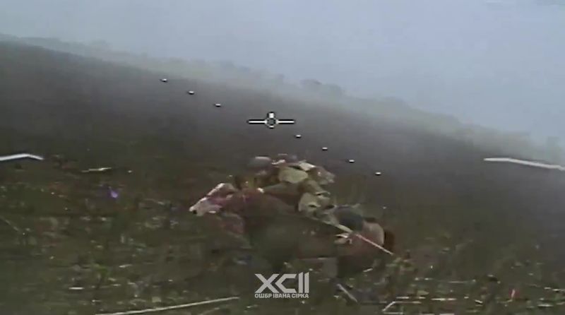 ウクライナの平原を馬で駆けるロシア兵とみられる画像。ウクライナ軍第92独立強襲旅団がフェイスブックで公開した動画より