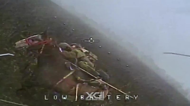 ウクライナの平原を馬で駆けるロシア兵とみられる画像。ウクライナ軍第92独立強襲旅団がフェイスブックで公開した動画より