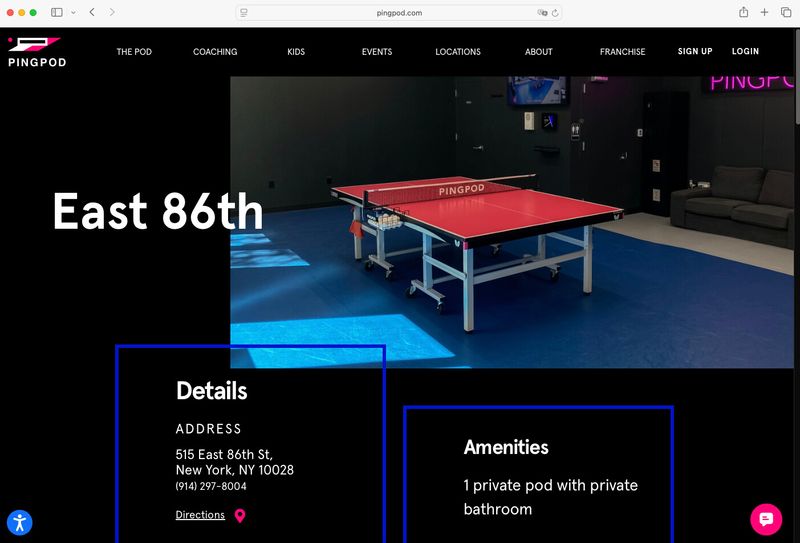「PingPod」East 86th店 紹介ページのスクリーンショット