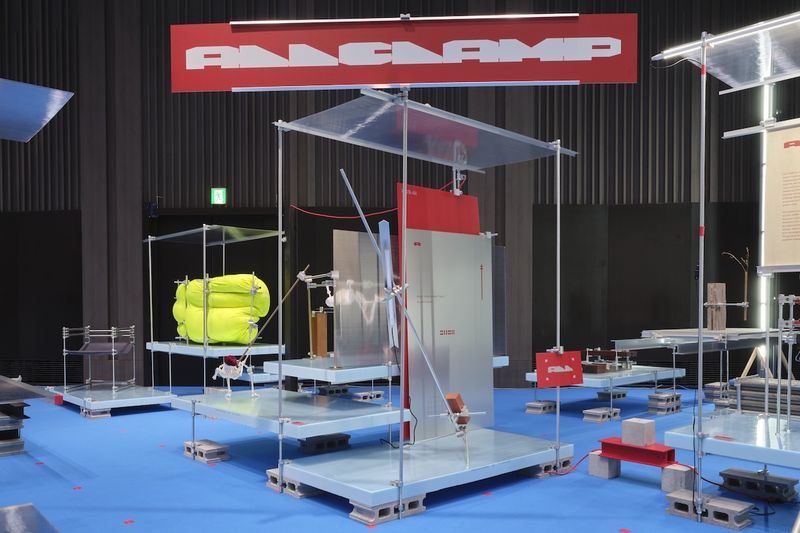 「ALL CLAMP」は素材を選ばず接続できるクランプシステム。alter.の会場でもパーティションや照明、サインに使用され、会期終了後は分解・再利用された。